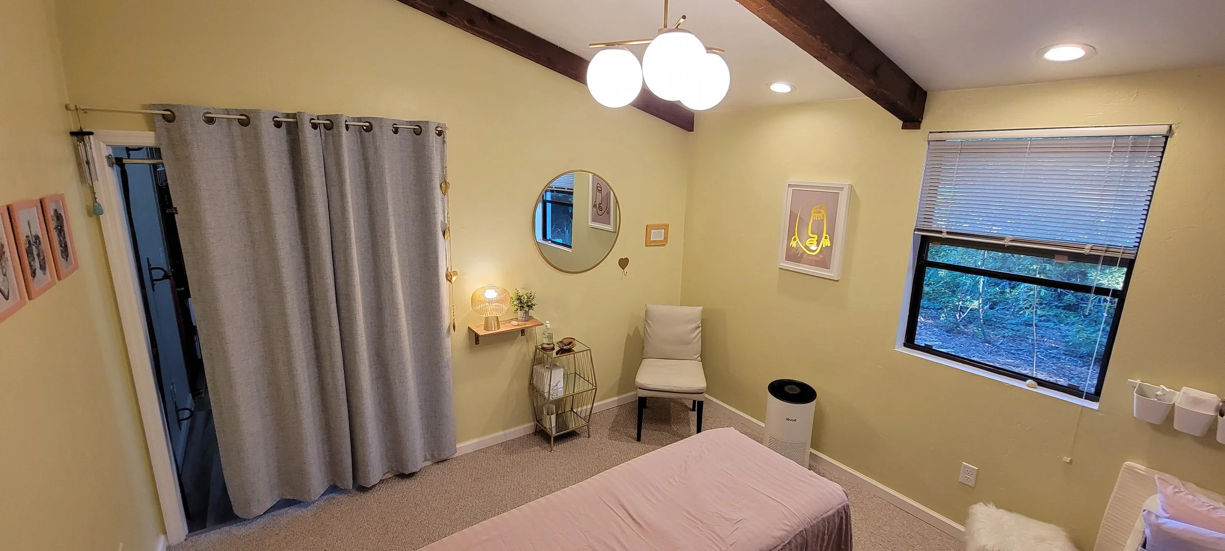 The therapist works in a studio that promotes a calming environment, making it optimal for the client to achieve their therapeutic goals. The client is asked to arrive 5 minutes prior to their scheduled session.